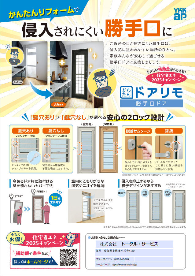 新生活を快適・安全に迎えるために、玄関ドアや勝手口リフォームもおすすめです。