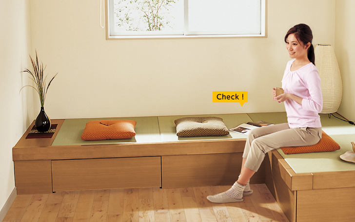 畳のある部屋が欲しくても、和室を新たに増やすのはかなりの手間。そこでおすすめなのが、簡単なリフォームで後付けできる「小上がり」タイプです。適度な高さがあって立ち座りがしやすく、くつろいだり、小さな子どものケアやちょっとした家事にも便利に使えます。色柄も豊富なのでお部屋の雰囲気に合わせたコーディネイトも可能です。