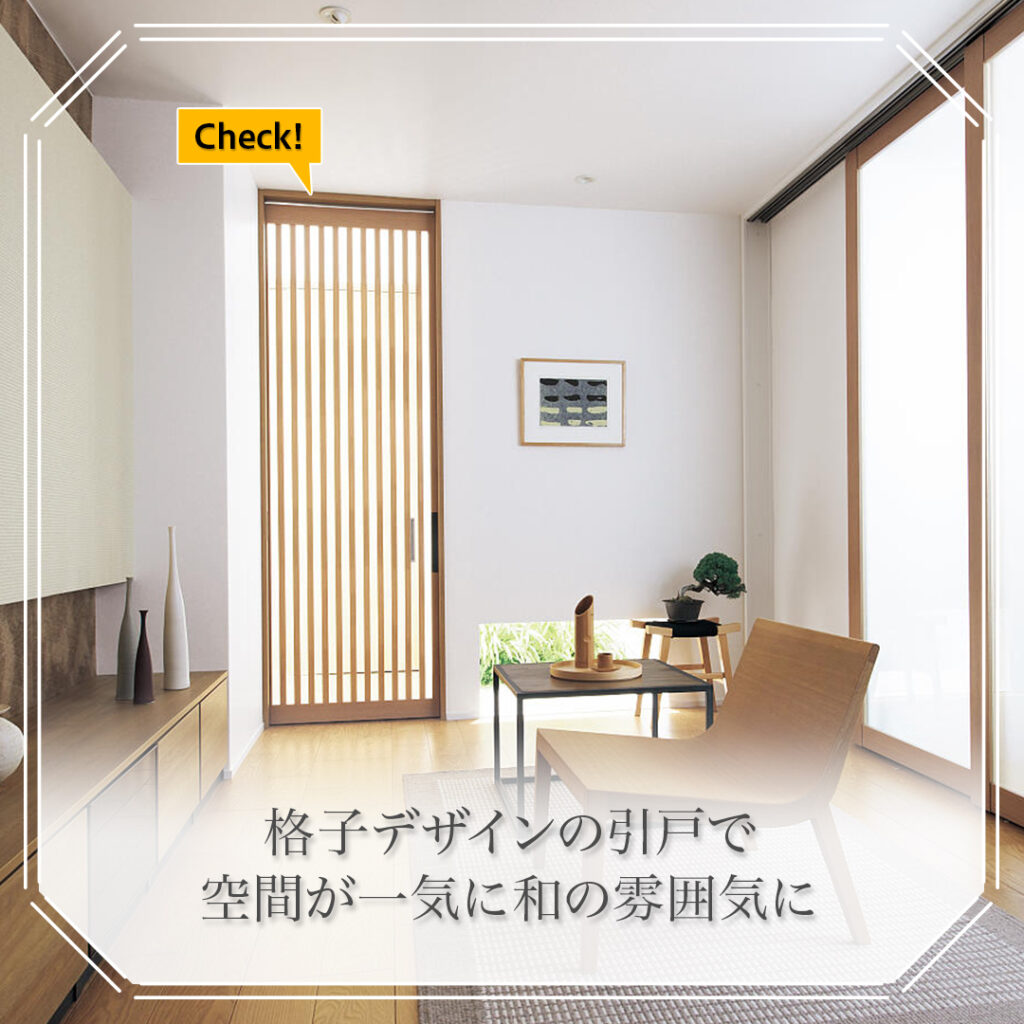 ■格子デザインの引戸で、空間が一気に和の雰囲気に