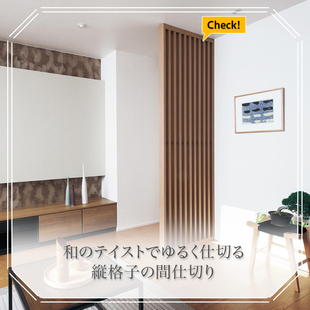 ■和のテイストでゆるく仕切る、縦格子の間仕切り