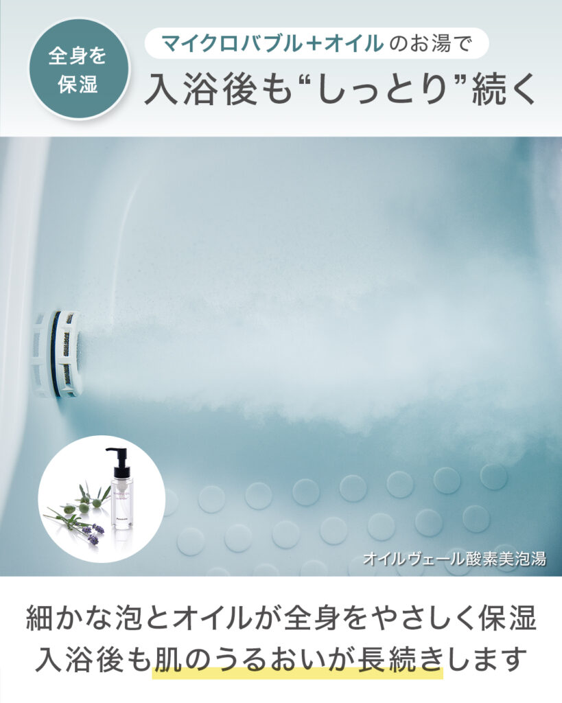 マイクロバブル+オイルのお湯で入浴後も”しっとり続く