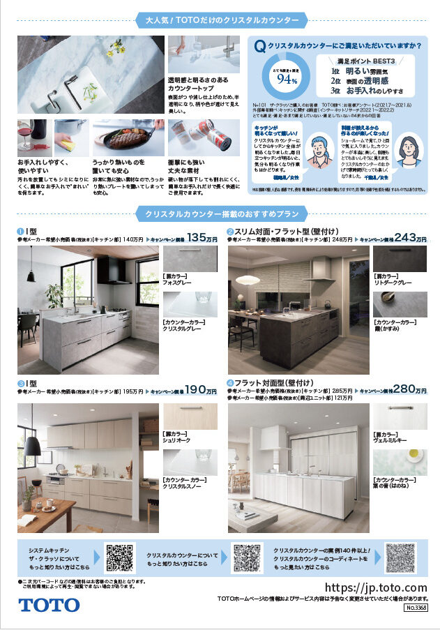 TOTOのシステムキッチン「ザ・クラッソ」に搭載されている「クリスタルカウンター」の期間限定キャンペーンについてのご案内です。