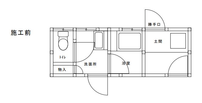 現場調査でトイレ・洗面・浴室が並んで配置されており、隣に物置兼洗濯を干したりして使われているスペースがありましたので、そのスペースも併せてそれぞれを広く将来車いすや介助が必要になっても対応できるように間取り変更もご提案させていただきました。