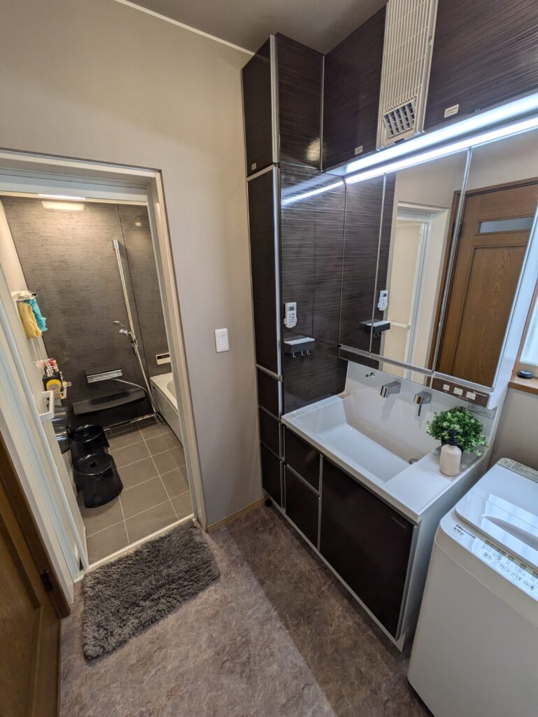 サイドキャビネット付きのたっぷり収納タイプで洗面ルームヒーター付きで使い勝手もバッチリです。