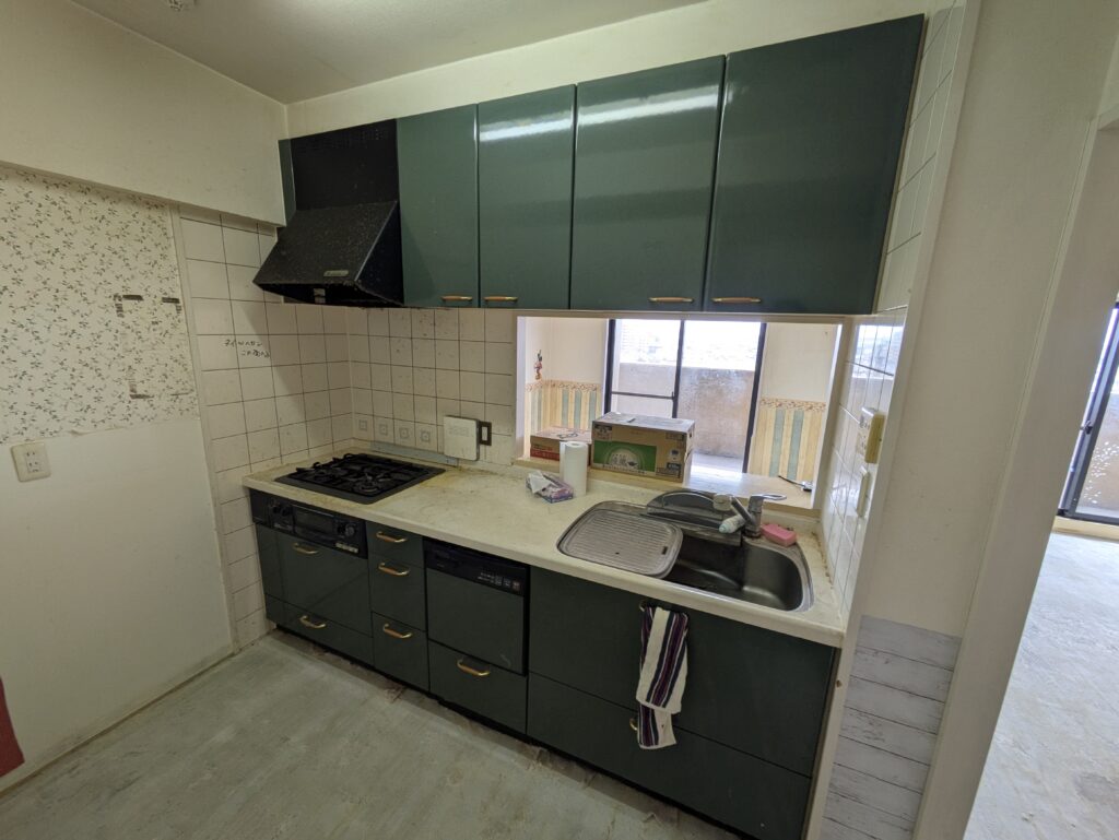 フローリングや壁紙も貼り替えて、キッチンはアイボリー調の明るく優しい雰囲気のキッチンに。 【クリナップ】ラクエア