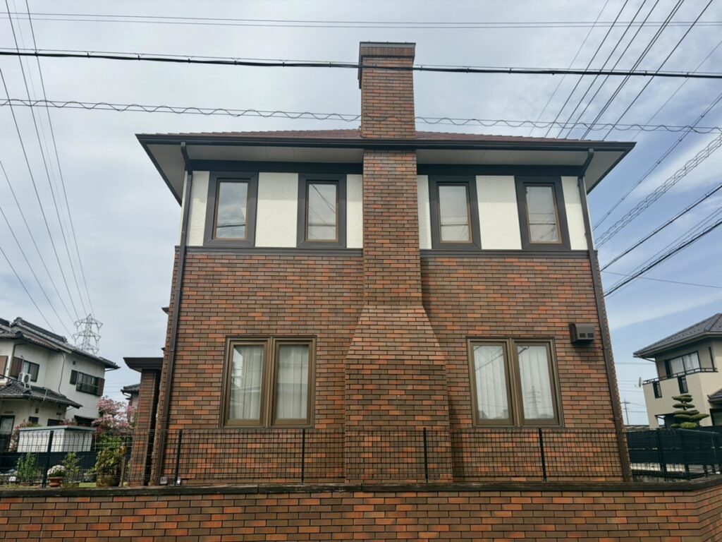タイル部分は高圧洗浄できれいに。 外壁の白い塗装の部分と屋根を高圧洗浄できれいにしてから塗装で仕上げました。